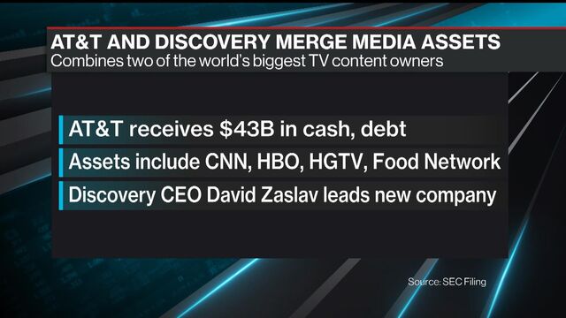 At T T To Merge Media Assets With Discovery Disca In 130 Billion Deal Bloomberg